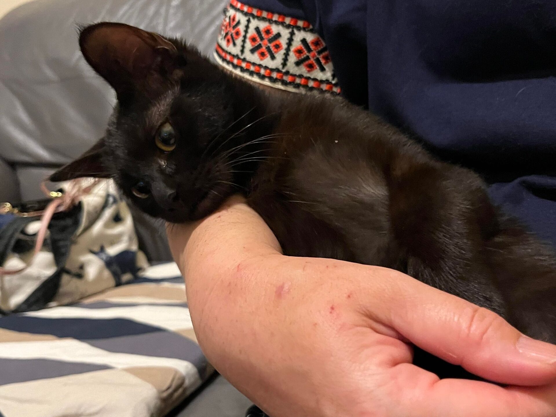 他の猫に引っ掻かれたのか怪我をしていたため保護しました。