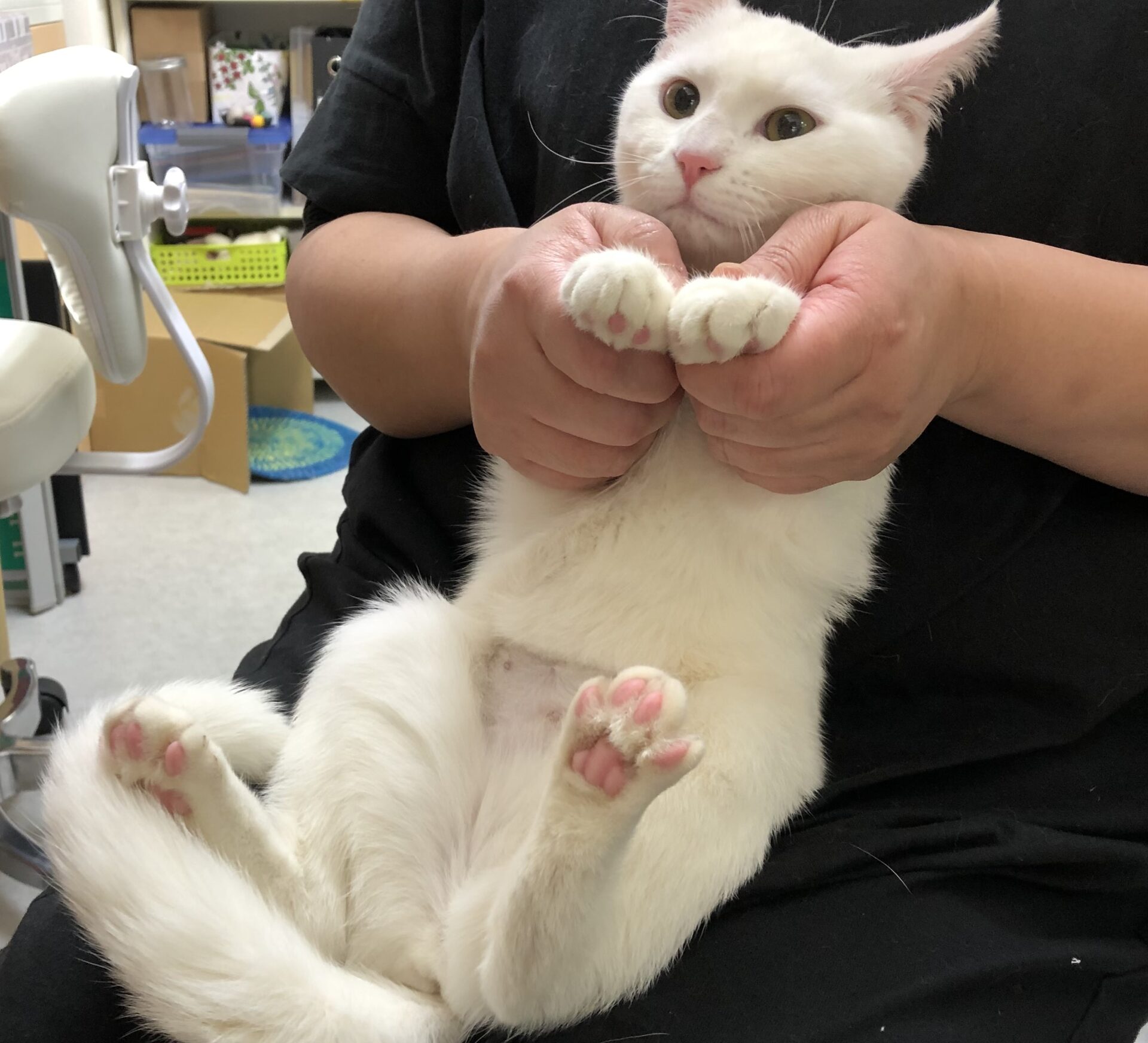 ラウンジに移動さしてきたばかりの白ちゃん、とにかくかわいいひたすらかわいい。