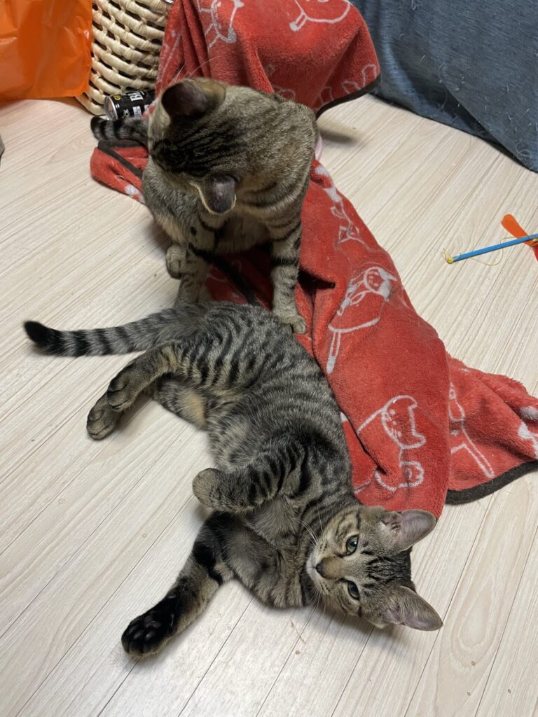 母猫とはともだち親子のようによく取っ組み合いをして遊んでいます。