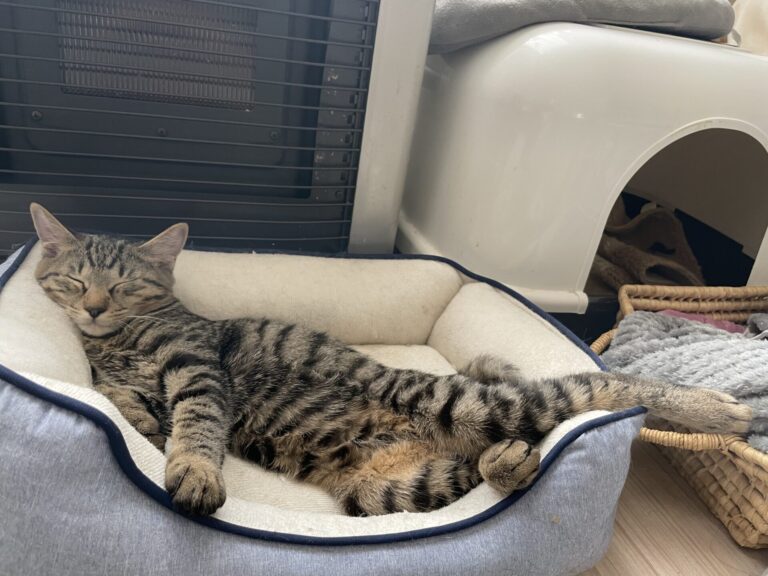 最初は人を怖がって近寄りませんでしたが、徐々に心を開き今では甘えてくるように。最初は人見知りするかもしれませんが焦らず接して下さるかたに。