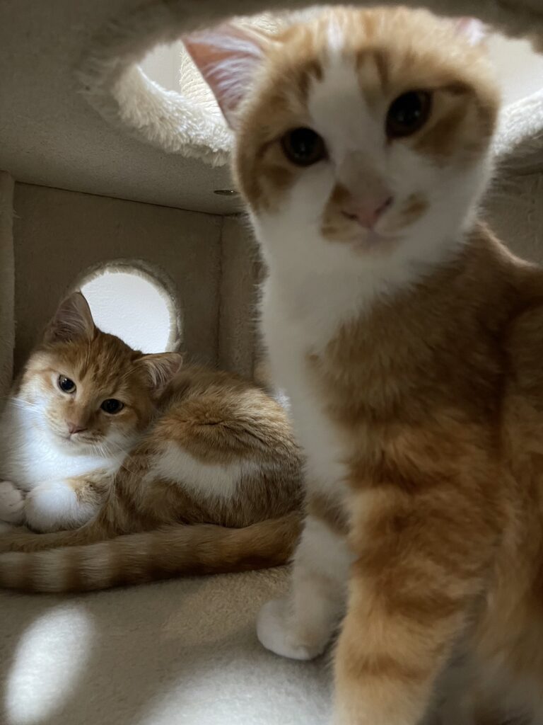 2匹ともにストレスで、自分で毛を舐め、抜けていましたが落ち着きました。(顕微鏡で検査し、菌などはいないと確認済み)