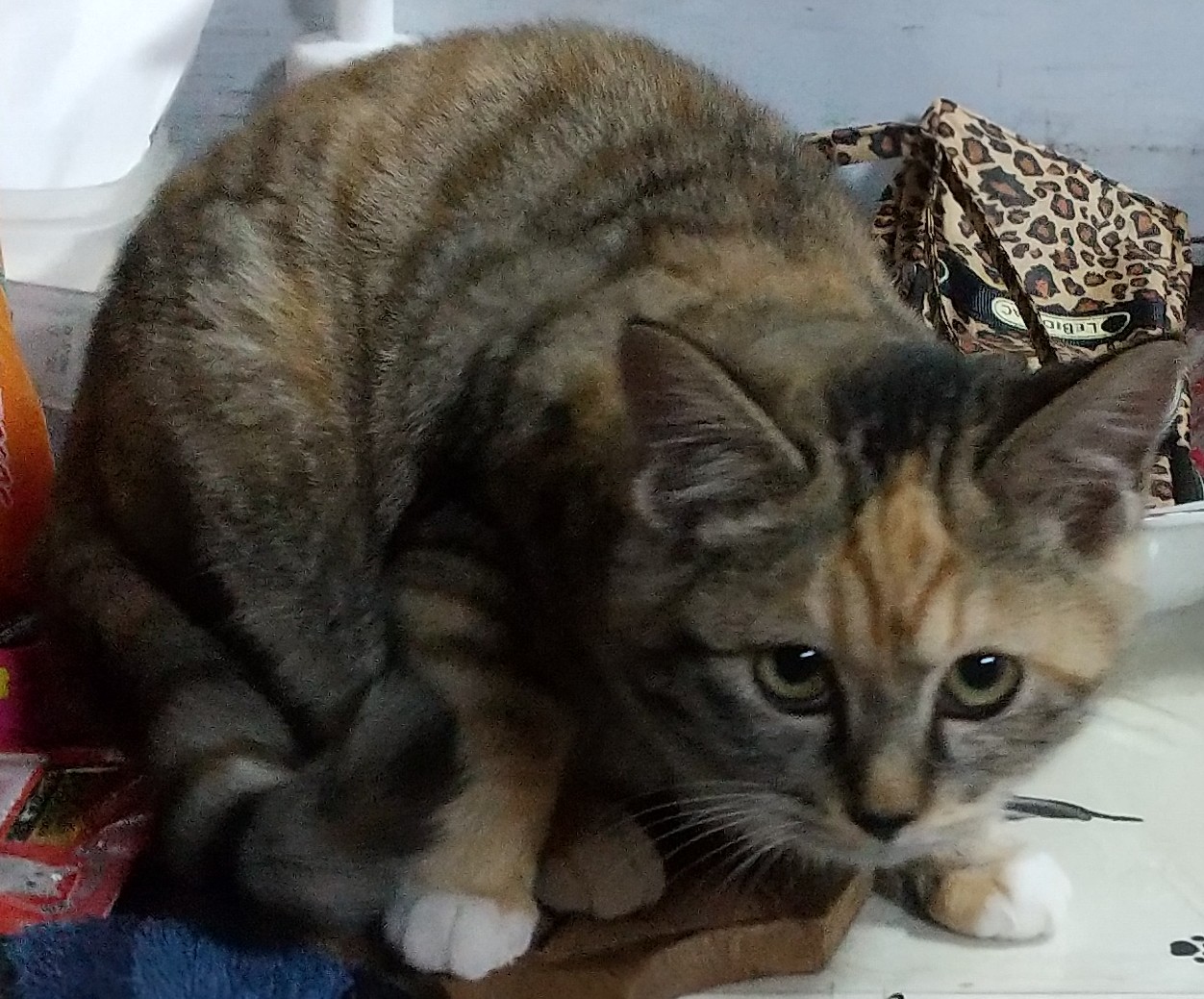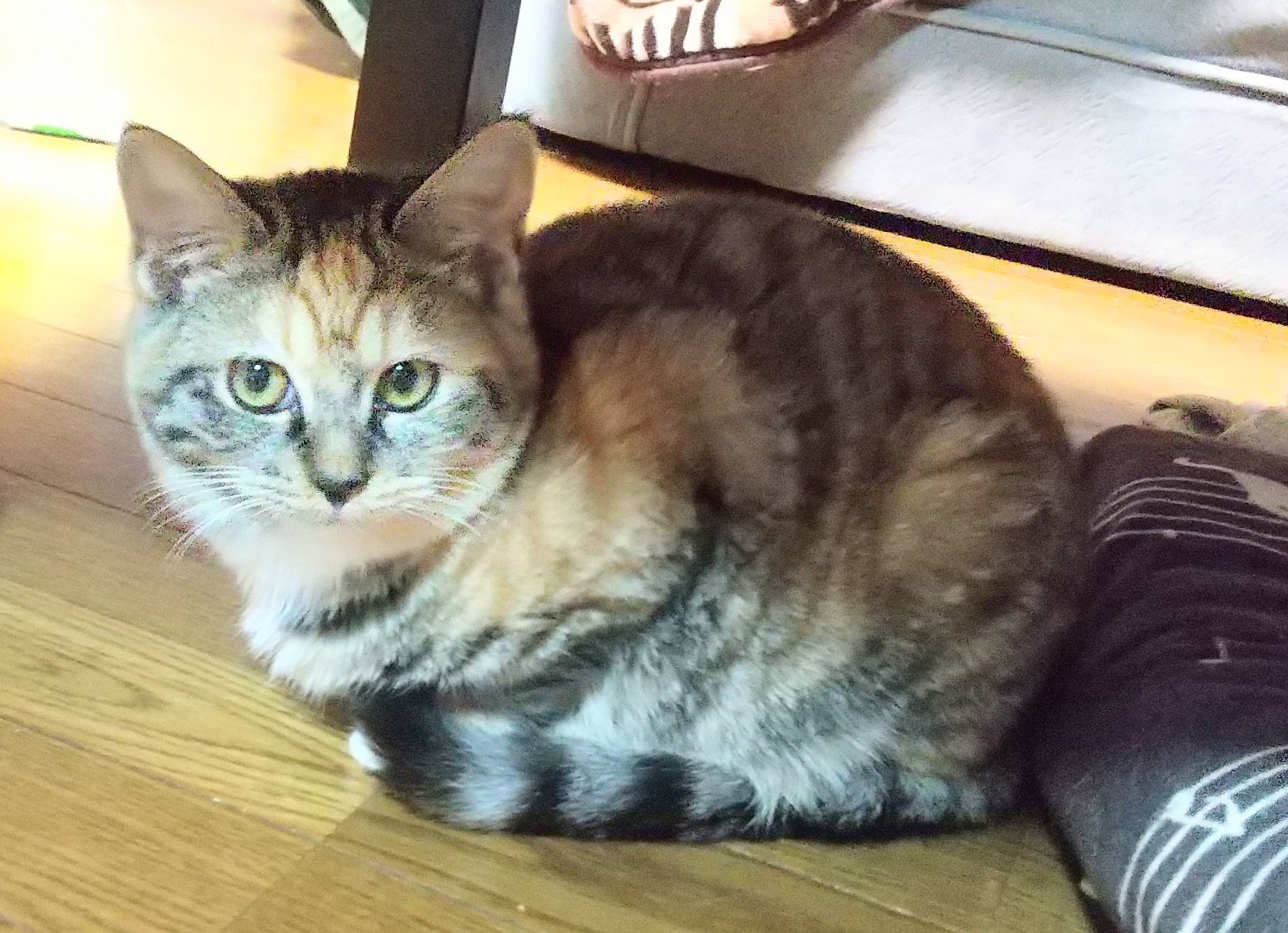 怖がりでしたが、かなり積極的にリビングでお腹を出して寝られるようになりました。茶毛が多いキジミックス。足先は白いソックス履いています。あまり甘えるタイプではないと思いますがダッコはさせてくれます。