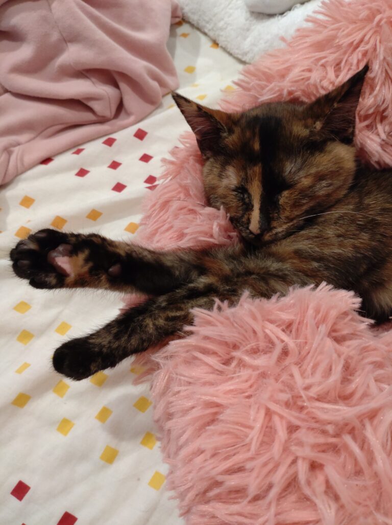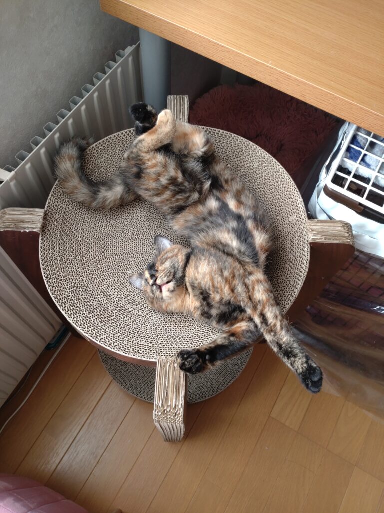じゃらし遊びが大好きで、沢山遊んだ後は側に来てお腹を見せてコロンと甘えるキュートガールです。