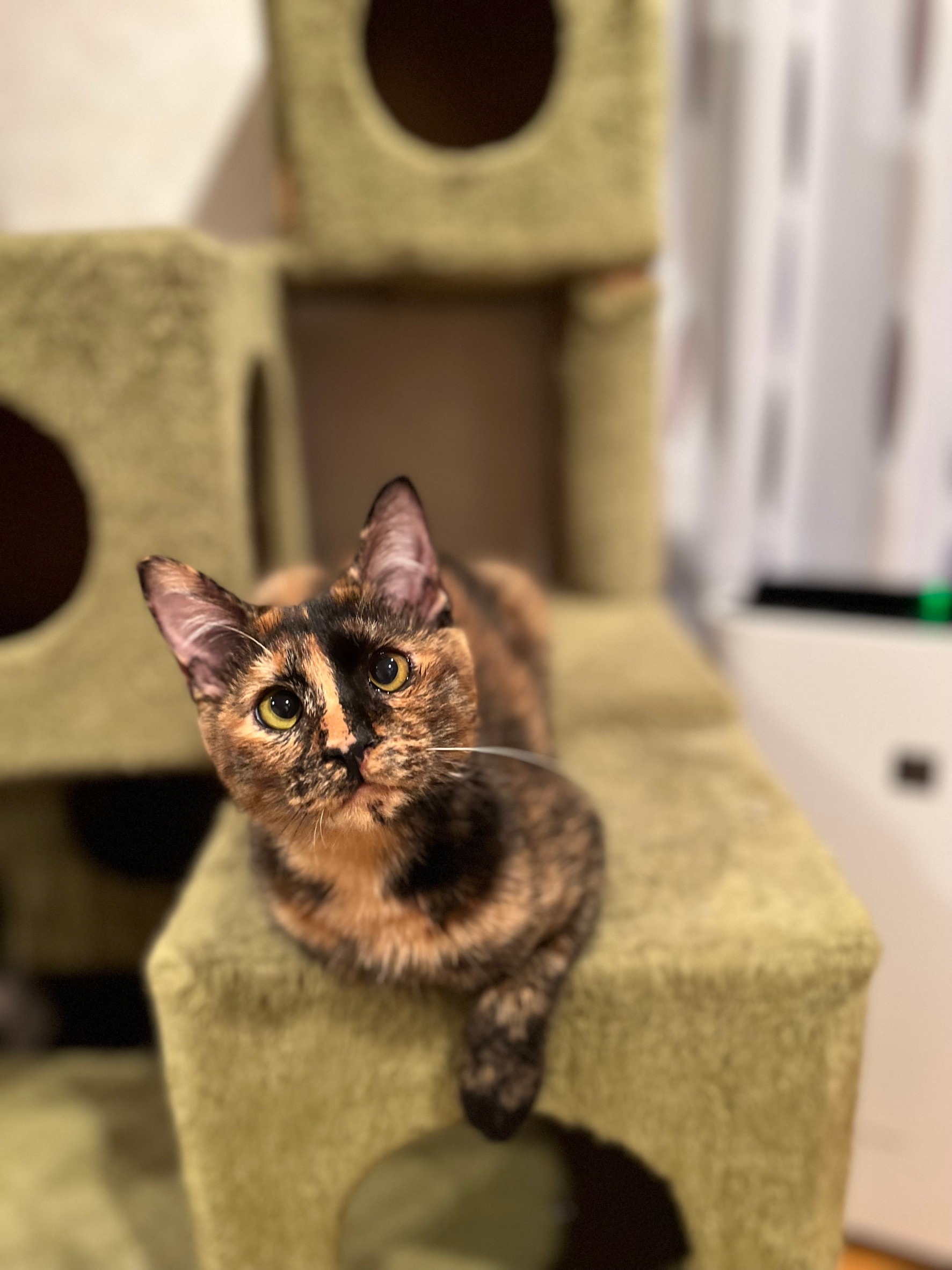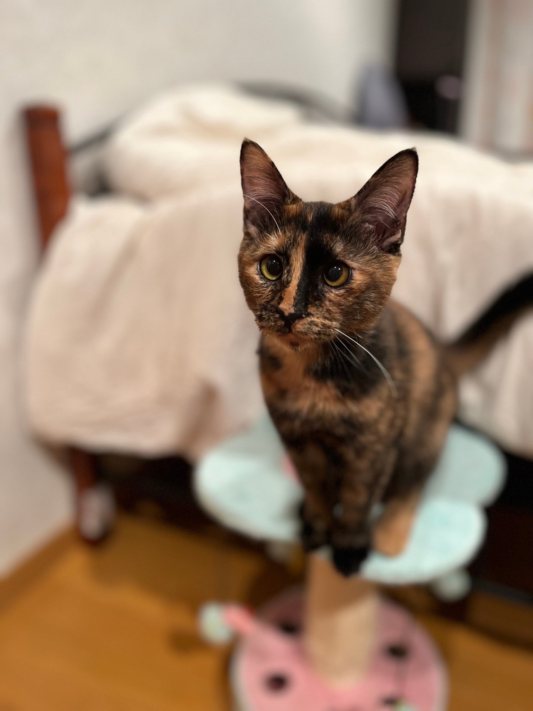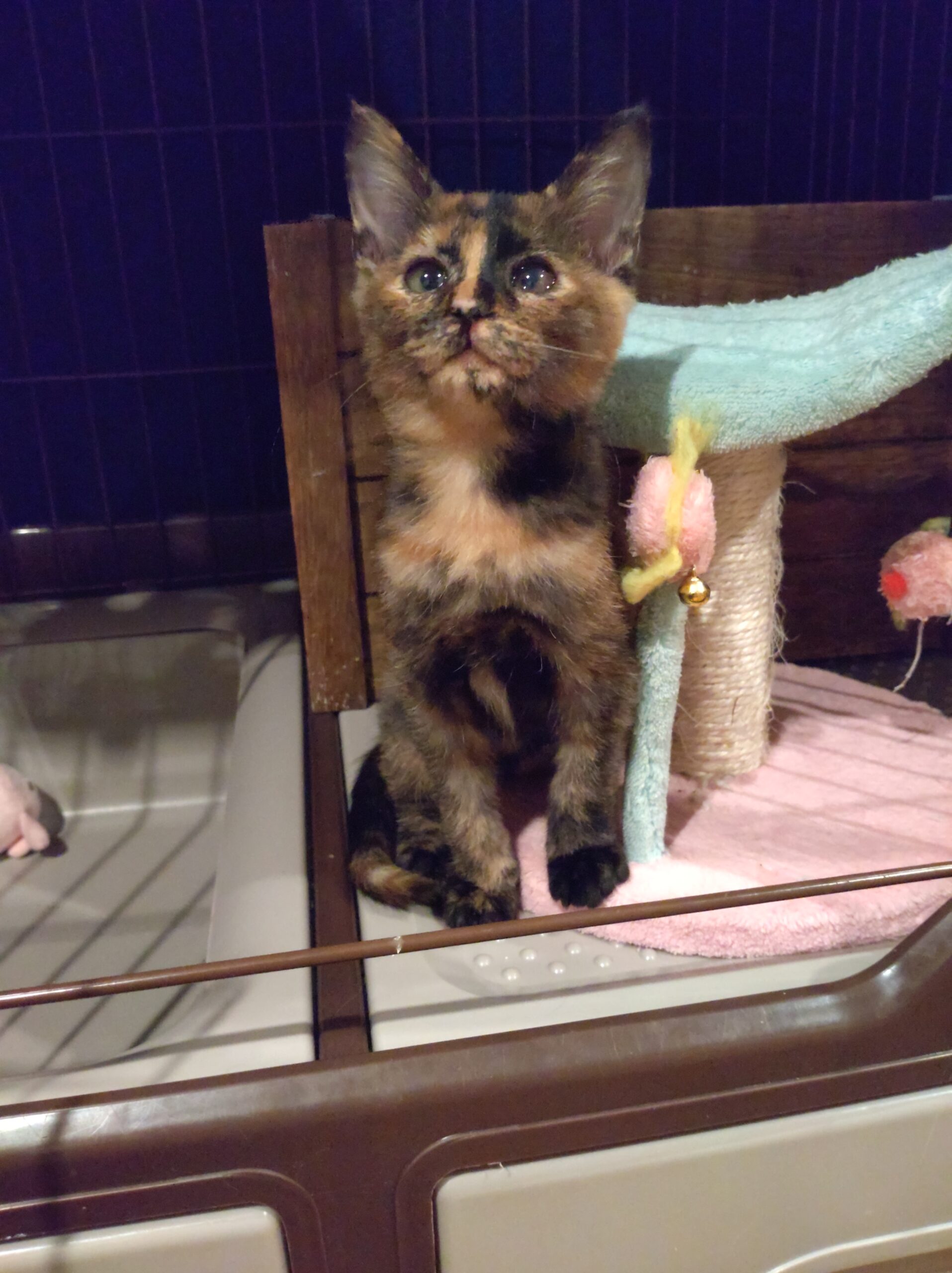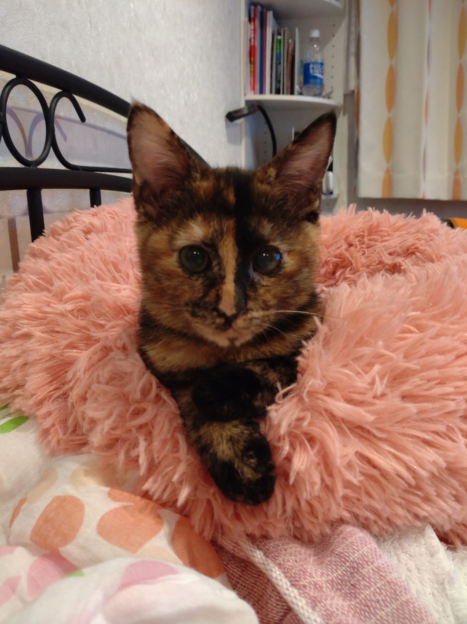 じゃらし遊びが大好きで、沢山遊んだ後は側に来てお腹を見せてコロンと甘えるキュートガールです。