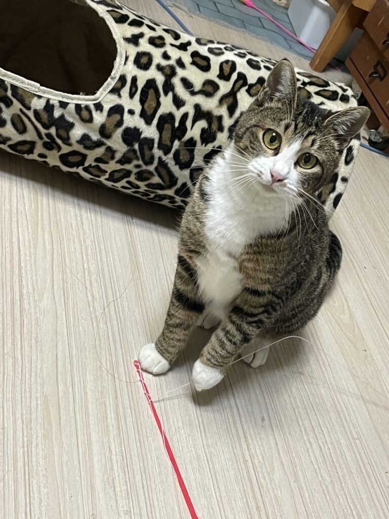 怖がりながらも、おもちゃで遊んであげるとノッテきます。
