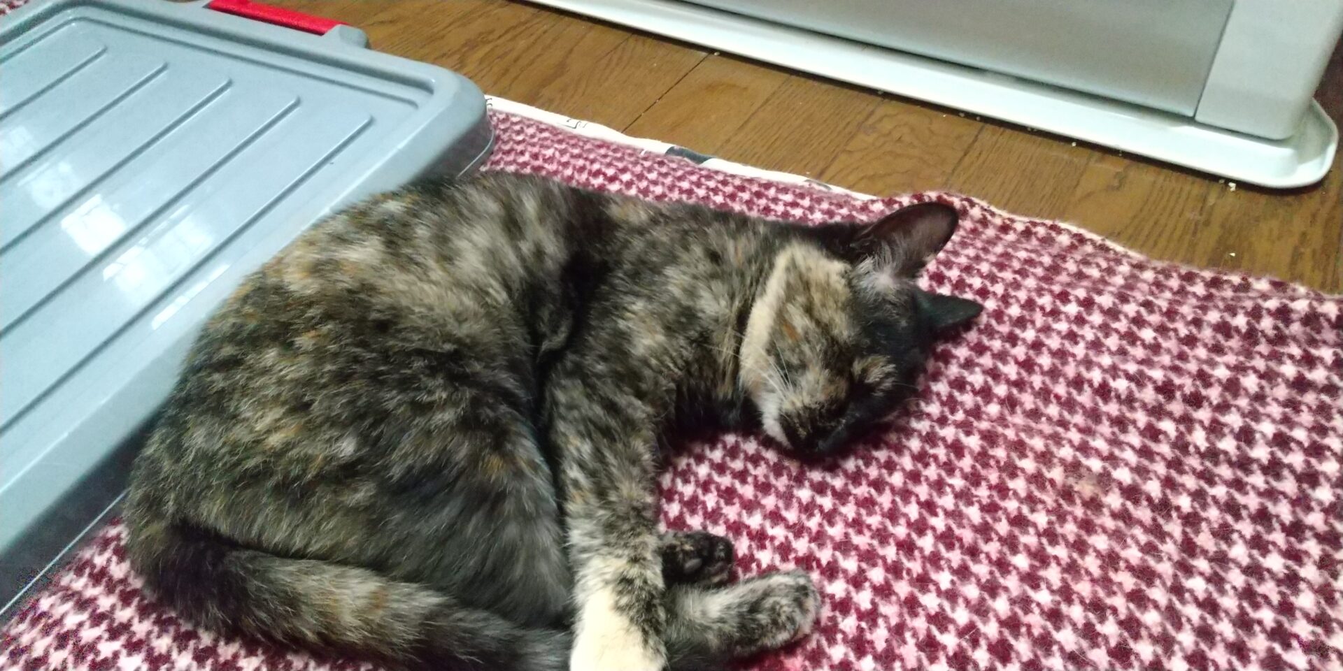 ゴロゴロくねくねする甘えん坊。保護され我が家に来た時唯一触れて甘えてくれました。