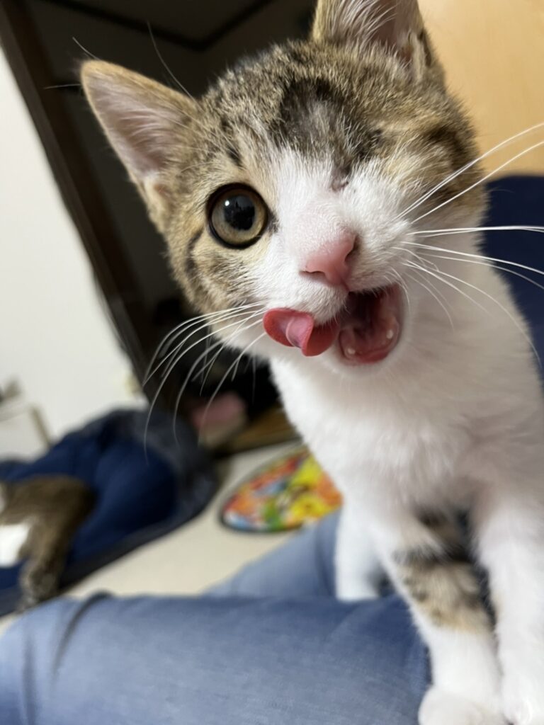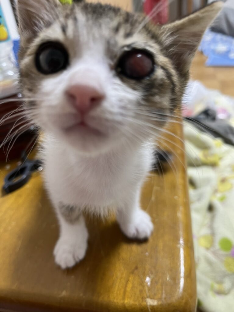 性格は目が片方見えないのもあるのか、多少ビビリもあるけどやんちゃです。