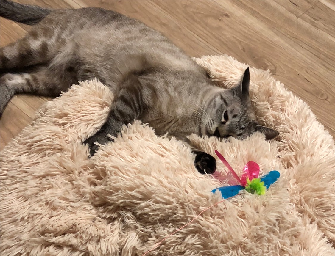 猫大好き、おもちゃ大好き、ブラシ・ねこじゃすり大好き。