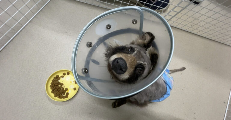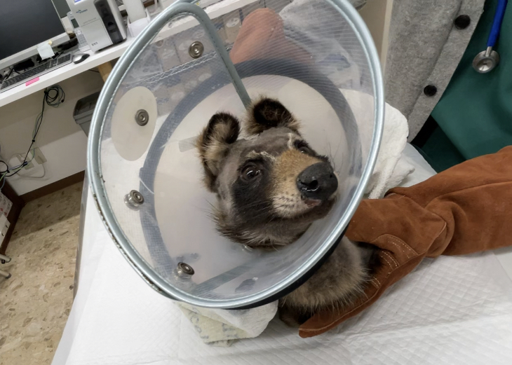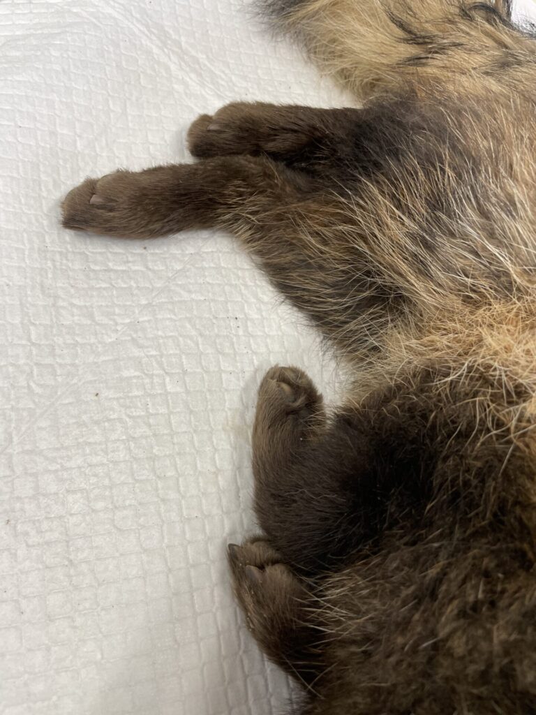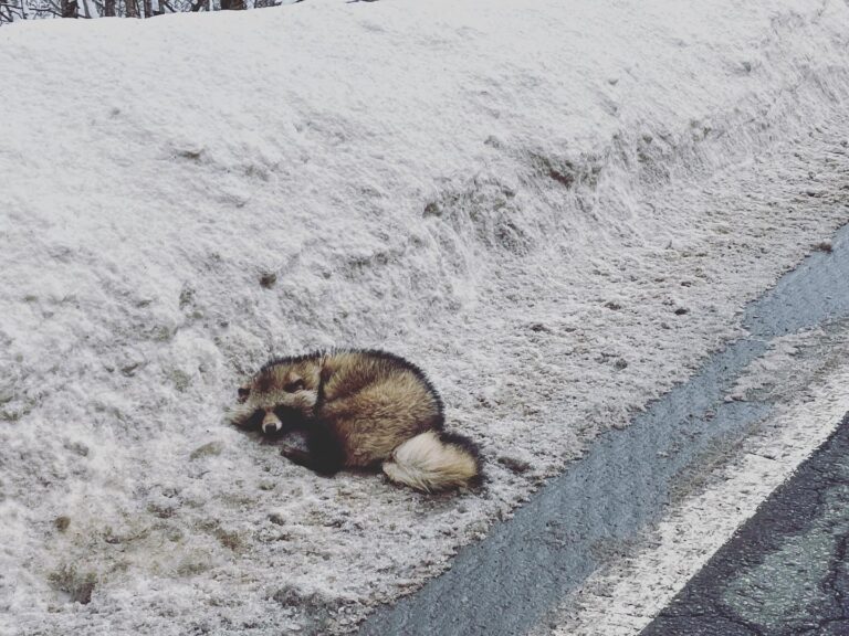 日高の山の中の国道で車にぶつかり動けなくなっているところを保護しました。