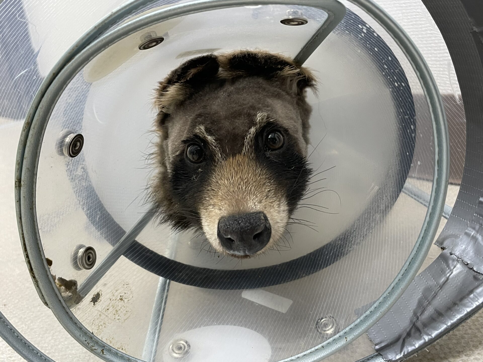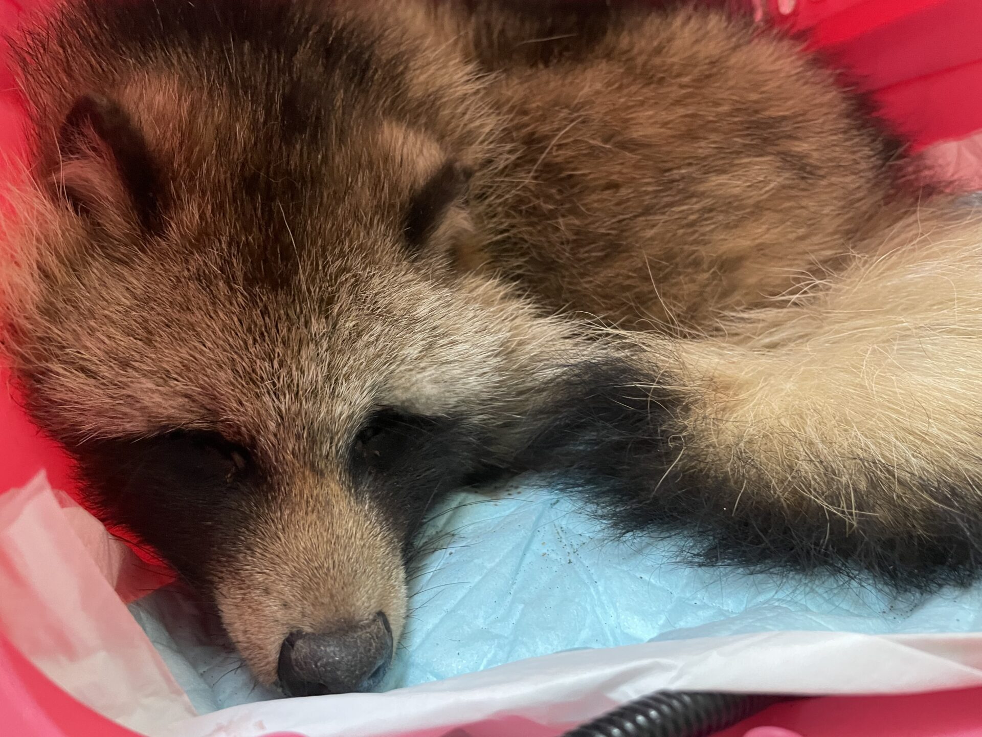 日高の山の中の国道で車にぶつかり動けなくなっているところを保護しました。
