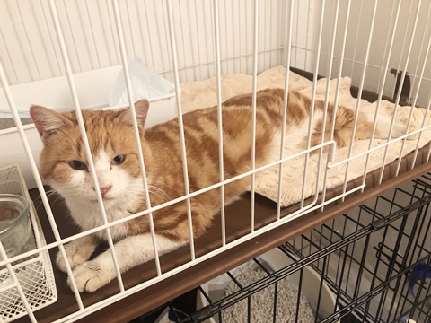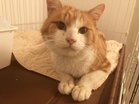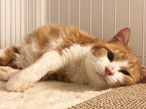長期外をさまよっていた形跡はありますが、元々人に飼われていたのか、保護時からべた慣れです。
